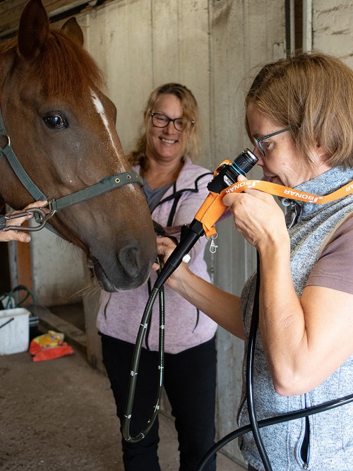 Hengitystieongelmat ovat hevosilla jalkavaivojen jälkeen seuraavaksi yleisin suorituskykyä alentava tekijä. Osa hengitystieongelmista nielussa ja henkitorvessa pystyään diagnosoimaan vain tähystimen avulla. Käytössämme on 1,4 m pitkä endoskooppi, jolla pystyy tähystämään hevosen nielun ja henkitorven. Tutkimus voidaan suorittaa talliolosuhteissa. Tarvittaessa hevonen rauhoitetaan toimenpidettä varten.